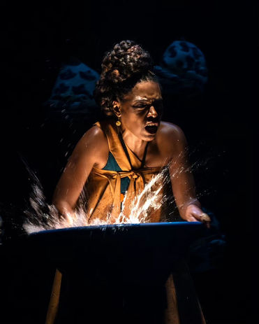 “Mãe de Santo” chama a atenção do olhar com os olhos de ver. A peça é baseada nas vivências da filósofa Helena Theodoro e de outras mulheres, como a da própria atriz que a interpreta, Vilma Melo, através de uma personagem muito empoderada, que ao dar uma palestra internacional, entrelaça as histórias, provocando sobre o que realmente interessa contar e mostrar. O que se espera de uma mulher nunca foi uma coisa só? Mãe, professora, empregada, mãe de santo, estudante. Quantas histórias cabem em uma única vida?